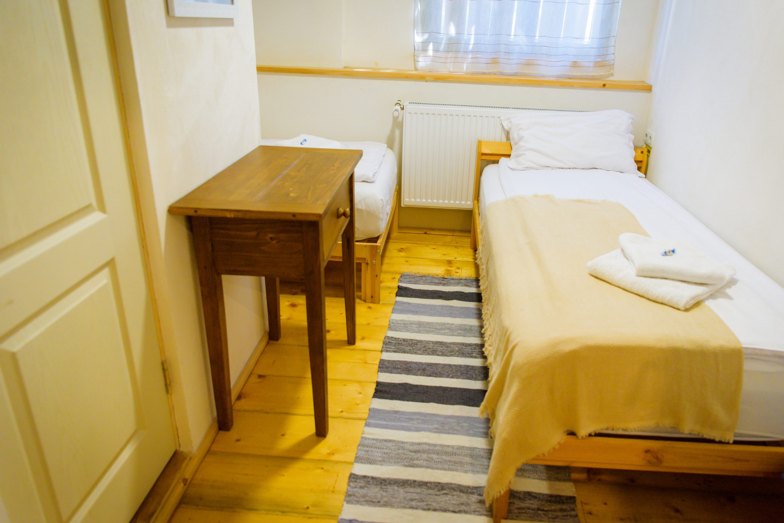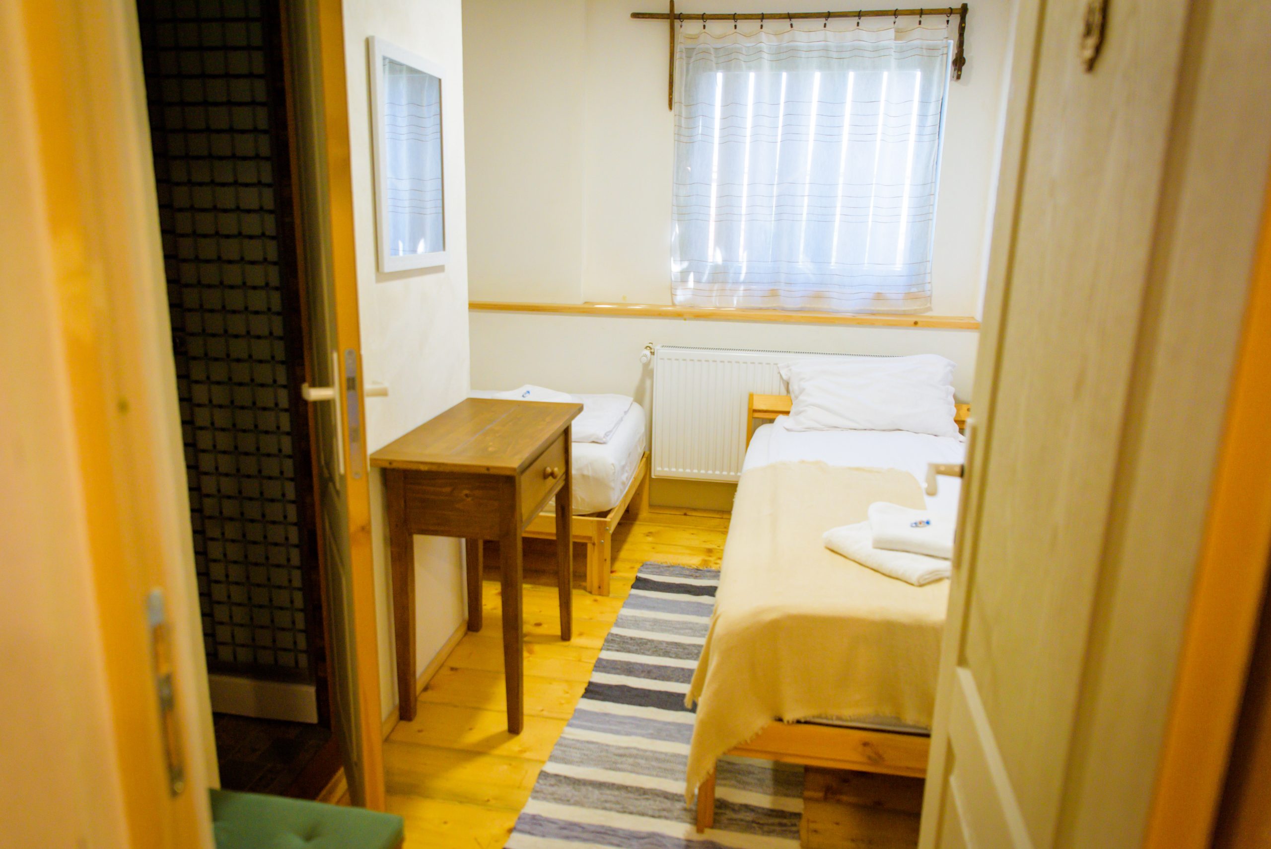 Kétágyas szoba saját fürdővel két személy számára. A szoba ablaka a főútra néz de kilátás nyílik Csíksomlyó hegyére.